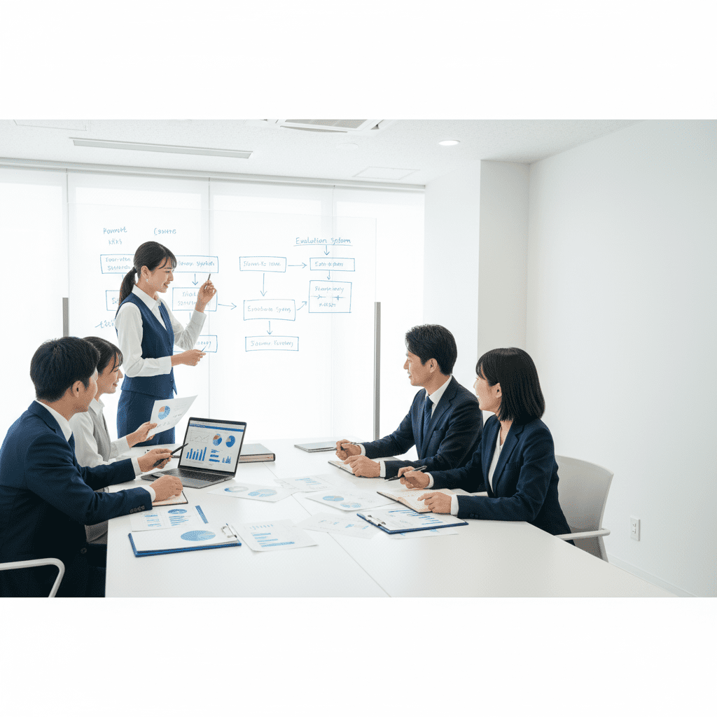 人事制度コンサルティング人事制度コンサルティング等級・評価・報酬を現場で回る仕組みに再設計。ロール/レベル定義、評価基準と行動例の整備、目標設定運用(OKR/SMART)、評価会運営の型化、報酬レンジと反映ルールの明確化まで。90日スプリントで試作→パイロット→定着を推進。